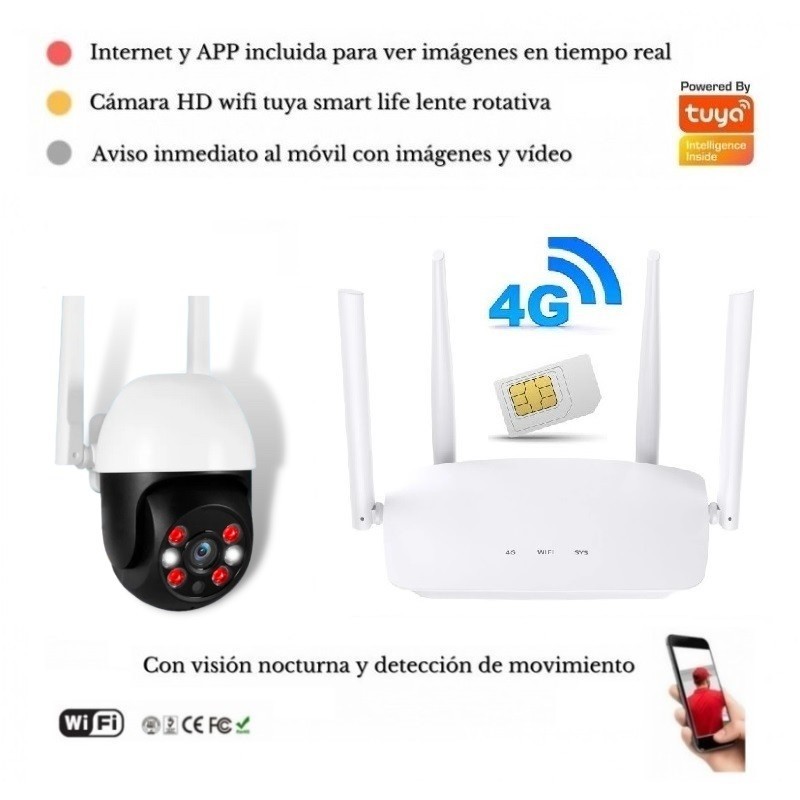 Kit Internet inmediato 4G incluido + 1 Cámara vigilancia Exterior HD + 1 Cartel Cámaras conectadas SIN COSTE