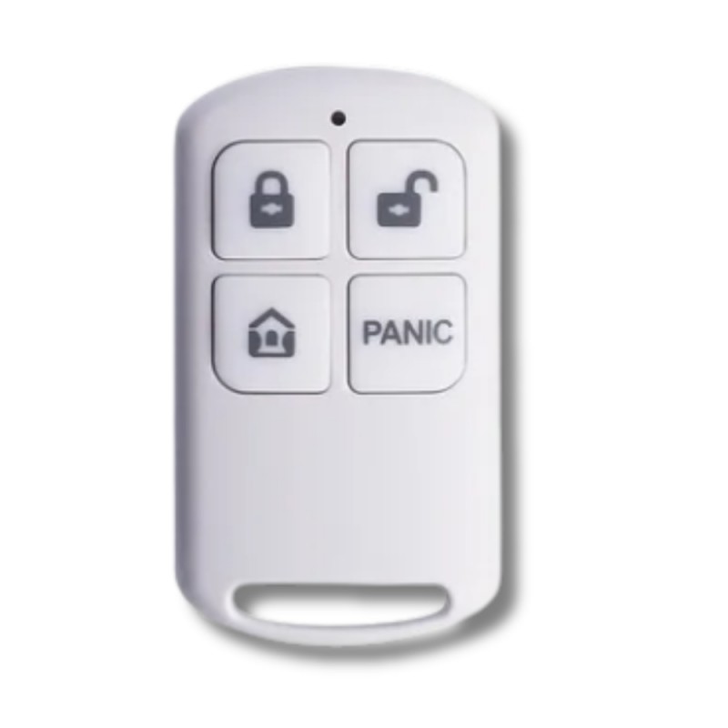 Cuatro botones: Armar, Hogar, Emergencias pánico y Desarmar