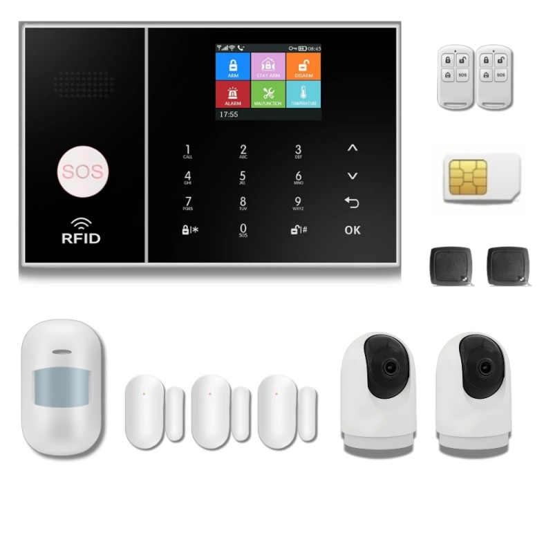 Opciones de activación Armado total / Desarmado / Armado modo hogar / Pánico SOS. Tiempo de retardo configurable de entrada y salida para el armado y desarmado mediante teclado y mando a distancia.