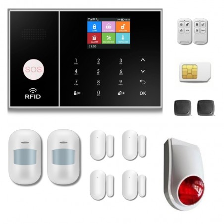 Opciones de activación Armado total / Desarmado / Armado modo hogar / Pánico SOS. Tiempo de retardo configurable de entrada y salida para el armado y desarmado mediante teclado y mando a distancia.