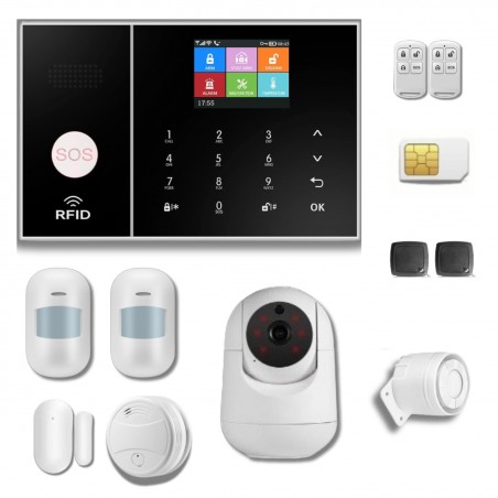1 Panel de control alarma sin cuotas, con sirena interior y batería Li-Ion de respaldo + SIM gratis