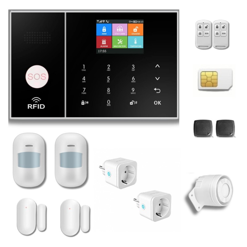 Opciones de activación Armado total / Desarmado / Armado modo hogar / Pánico SOS. Tiempo de retardo configurable de entrada y salida para el armado y desarmado mediante teclado y mando a distancia.
