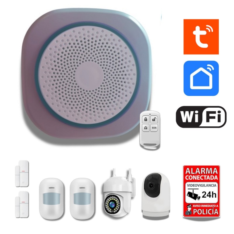 Cámara seguridad inteligente 1080P HD 2K inalámbrica WiFi tuya smart Notificación de perdida de conexión ante ataques o inhibiciones. Comunicación segura mediante cifrado. Simple instalación en techo,pared o mesa y configuración a través de código QR