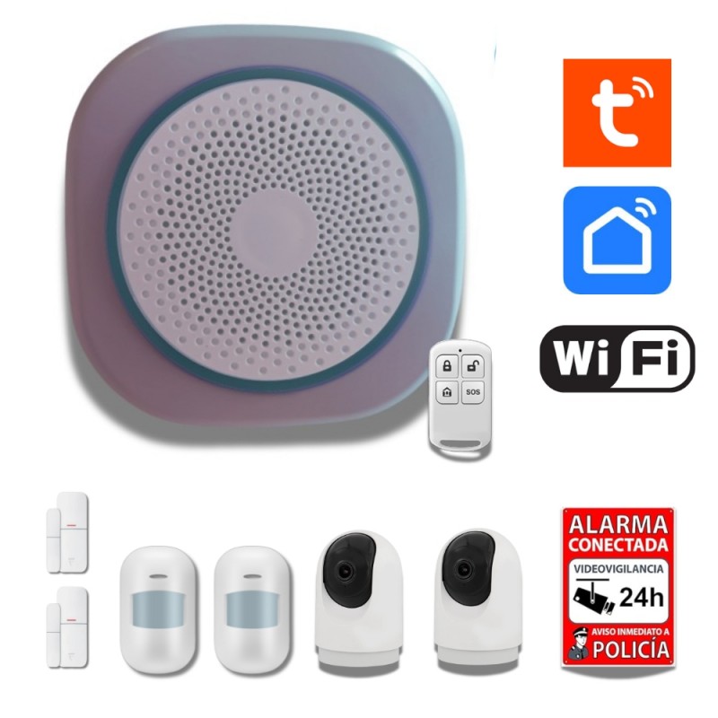 Cámara seguridad inteligente 1080P HD 2K inalámbrica WiFi tuya smart Notificación de perdida de conexión ante ataques o inhibiciones. Comunicación segura mediante cifrado. Simple instalación en techo,pared o mesa y configuración a través de código QR