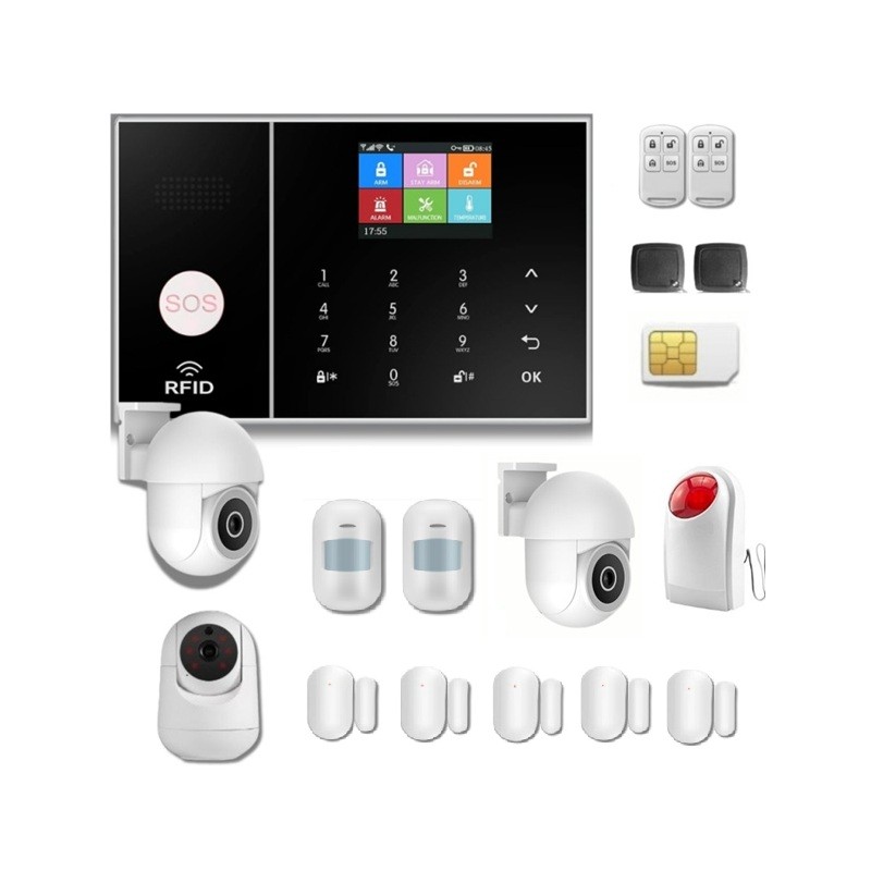 Opciones de activación Armado total / Desarmado / Armado modo hogar / Pánico SOS. Tiempo de retardo configurable de entrada y salida para el armado y desarmado mediante teclado y mando a distancia.